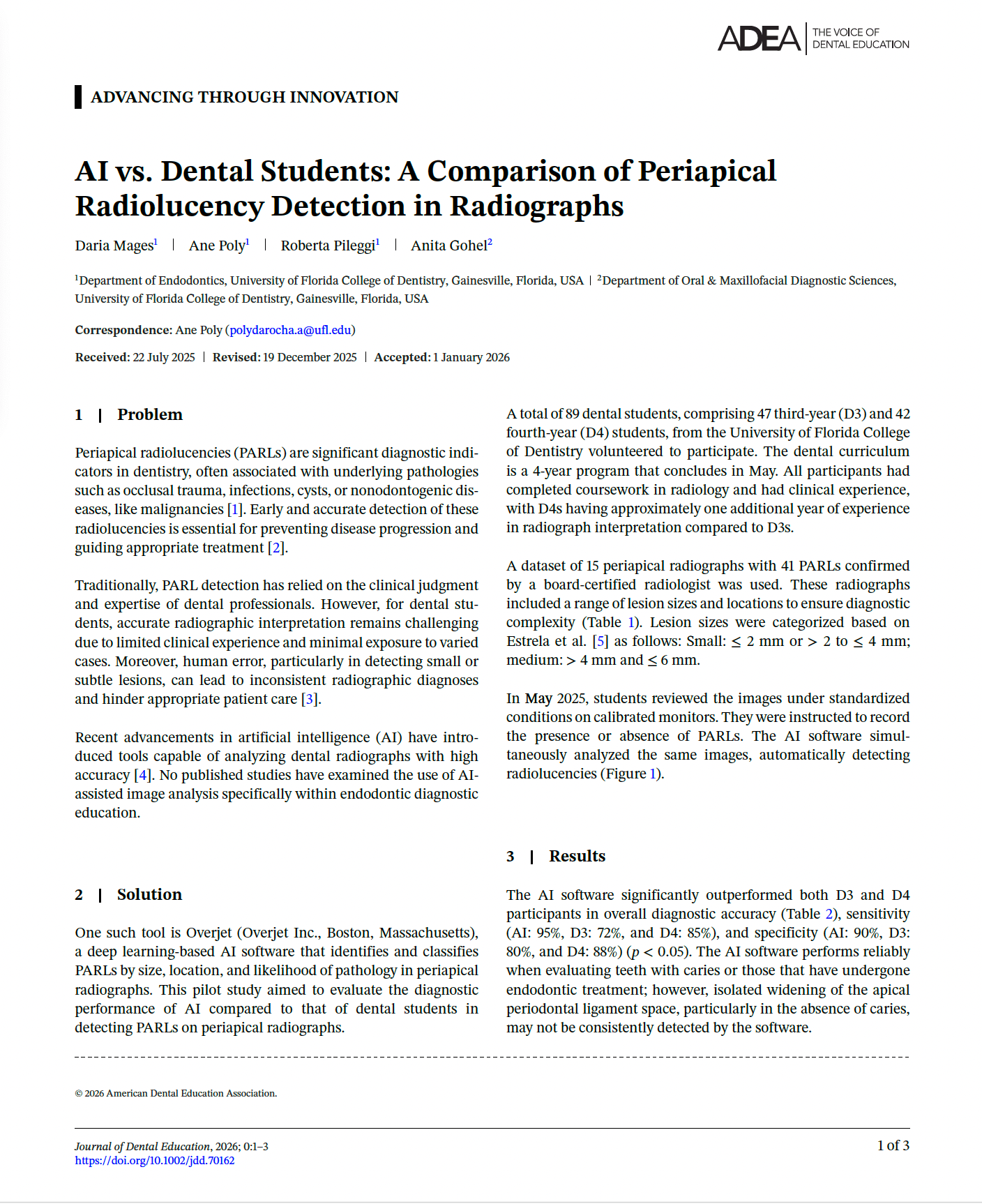How does AI stack up against human interpretation in dental radiology? In this peer-reviewed pilot study from the University of Florida, researchers compared dental students to AI in identifying periapical radiolucencies and found that AI delivered higher accuracy and consistency, especially for small and subtle lesions.